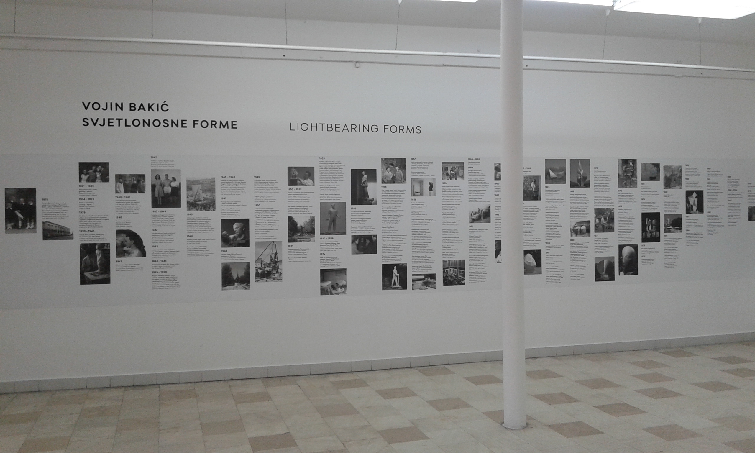 U gornjoj dvorani Galerije izloženi su raniji Bakićevi radovi. Na zidu desno od ulaza prikazana je vremenska crta koja pruža sažet i jasan pregled kiparova života i rada te se na taj način posjetitelji na samom početku mogu upoznati s kronologijom i razvojem umjetnikova opusa.