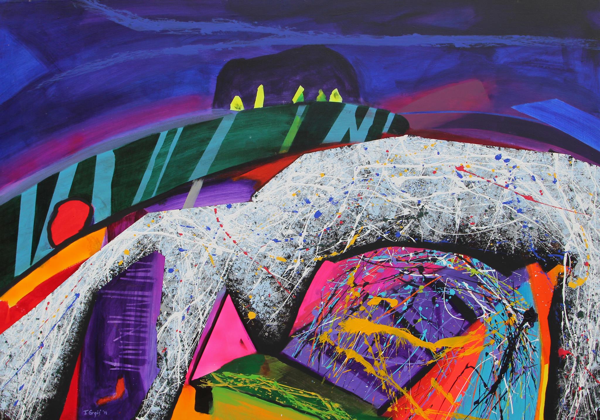 Slike Trpimira Grgića predstavljaju sintagmu naoko površnog fizičkog prostora i nude gledatelju putovanje kroz tajanstvena i duhovna prostranstva ukazujući na jedinstvo čovjeka i prirode istodobno se preobražavajući u hrpu šarolikih dječijih tobogana, ovisno o osobnom doživljaju…